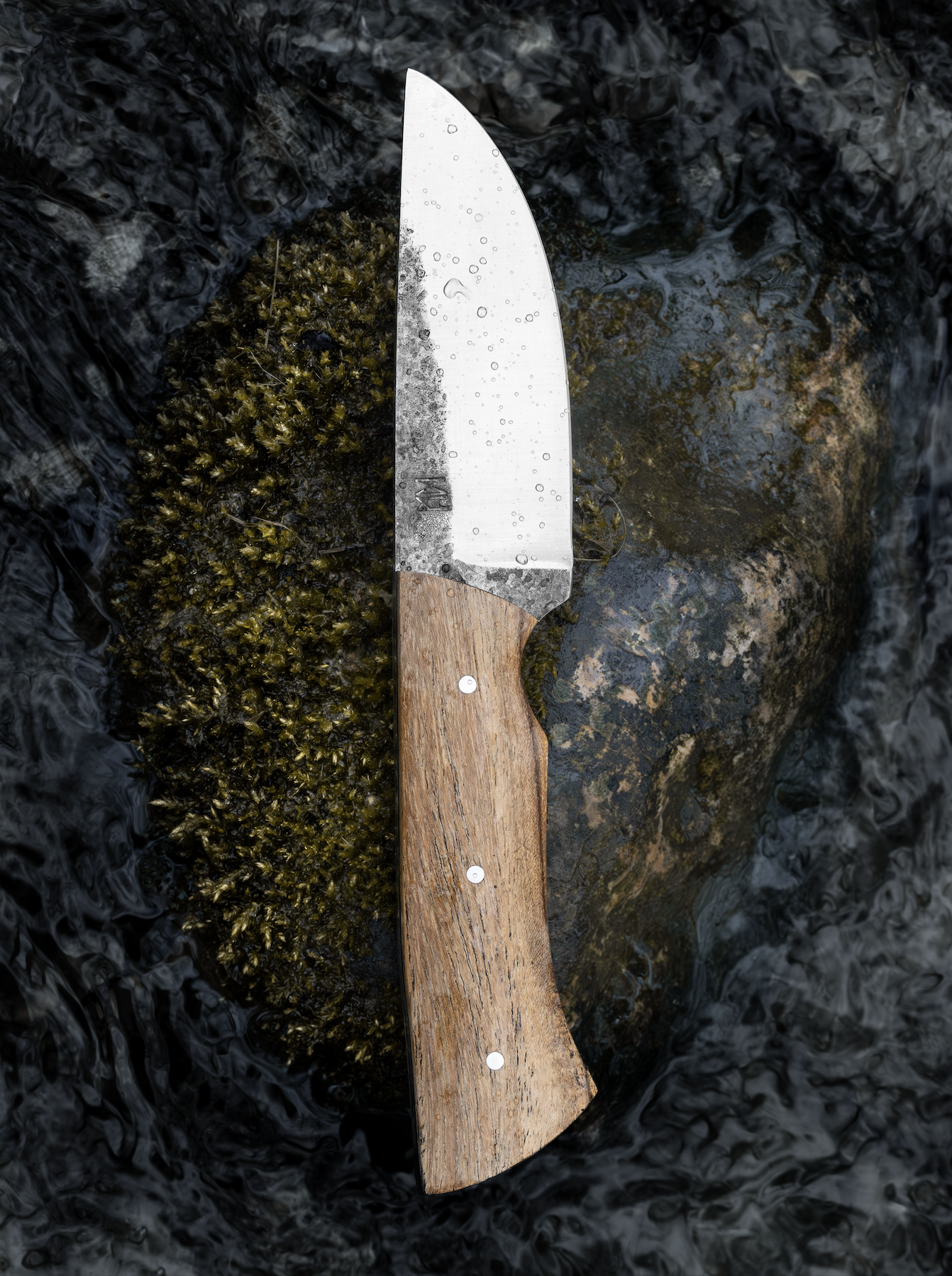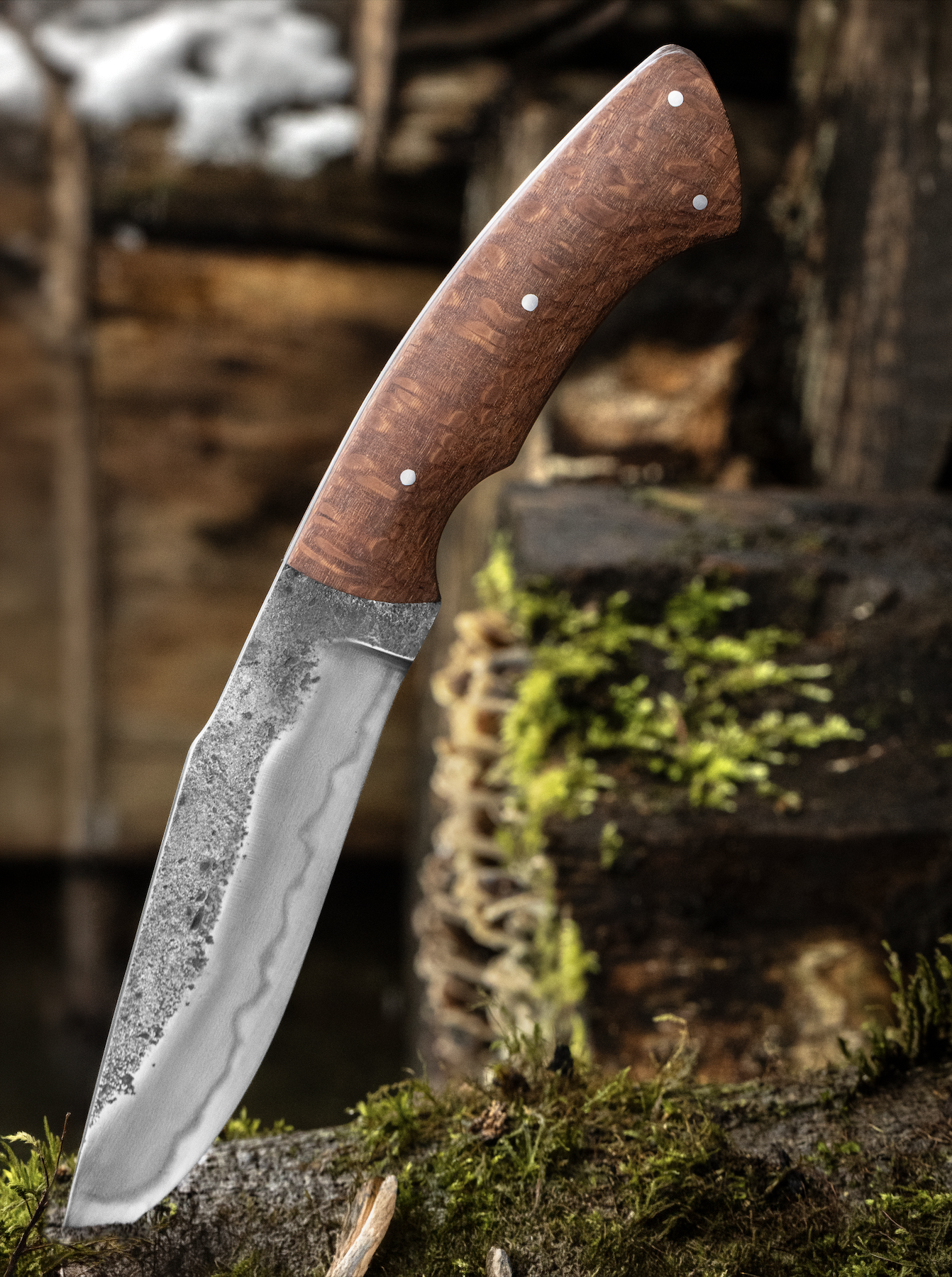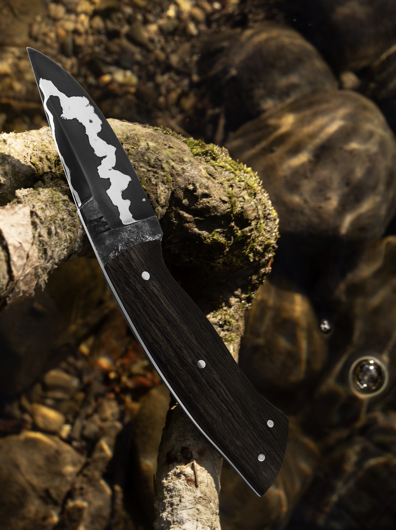 Lame en San Mai Acier 1095/Nickel avec contre-biseau dans le prolongement du brut de forge pour révéler la ligne